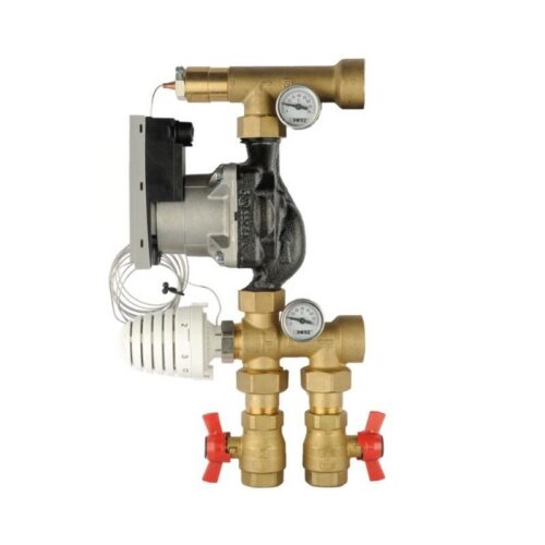 Смесителната група е предназначена за намаляване на температурата към подовото отопление при свързване на нискотемпературна линия към високотемпературна линия.